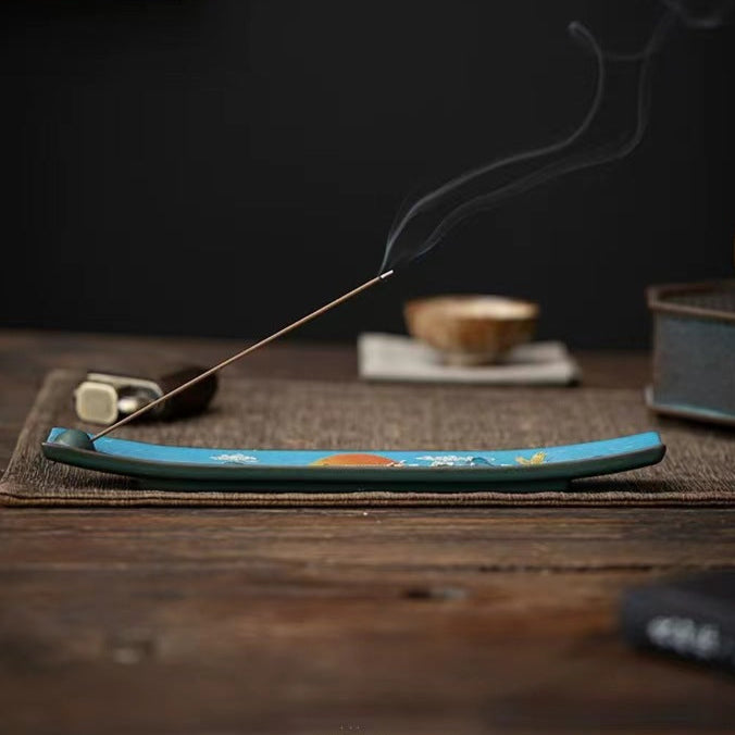 Its gently curved shape catches falling ash with ease, while the jade-green incense rest adds a graceful and functional touch.