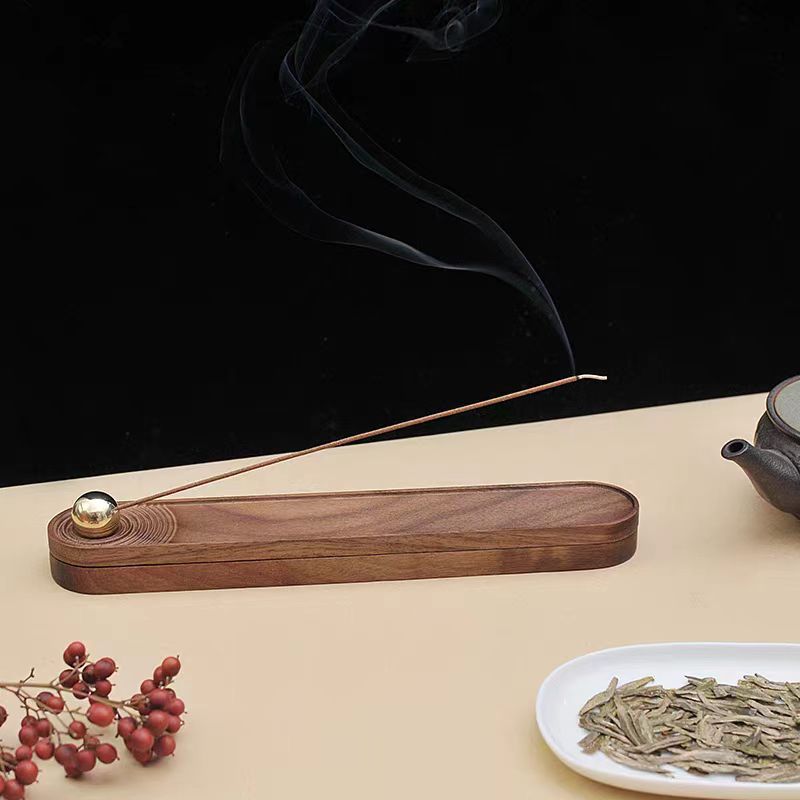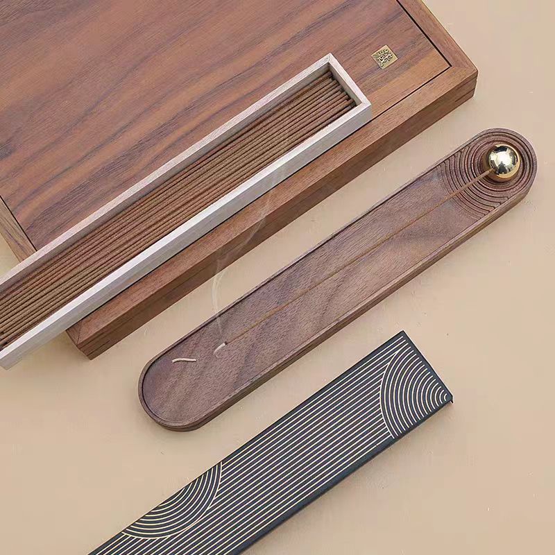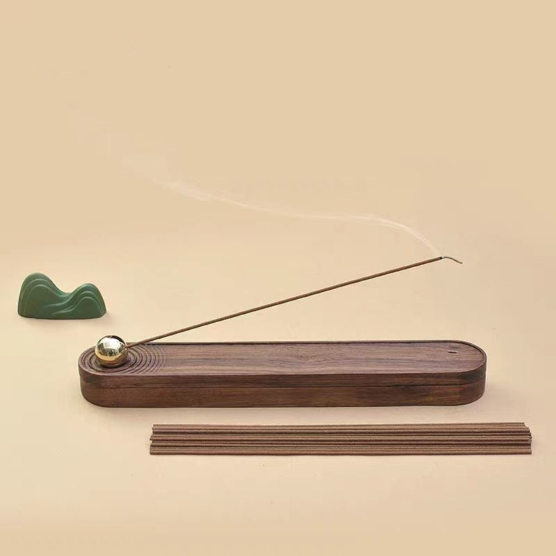 Zen Walnut Incense Burner Gift Set for Home Bedroom Living Room Study